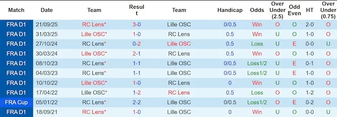 Trong lịch sử đối đầu, 10 lần gặp nhau gần nhất giữa hai đội hoàn toàn cân bằng với mỗi bên có 4 chiến thắng và 2 trận hòa. Tuy nhiên, tại sân Pierre Mauroy, Lille lại chiếm ưu thế rõ rệt khi thắng 4 trong 5 lần tiếp đón Lens gần nhất. Do đó, trận derby này luôn tiềm ẩn sự khó lường. Lịch sử đứng về phía Lille, nhưng phong độ hiện tại lại nghiêng về Lens.