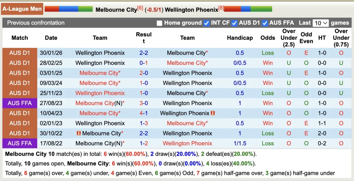 – Lịch sử đối đầu giữa Melbourne City và Wellington Phoenix