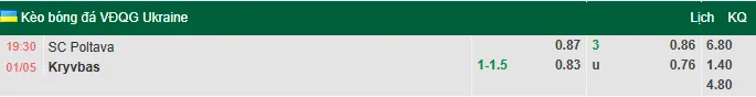 Phân tích trận đấu giữa Poltava và Kryvbas Kryvyi Rih sẽ diễn ra lúc 19h30 ngày 1/5/2026 trong khuôn khổ giải VĐQG Ukraine. Các chuyên gia hàng đầu sẽ đưa ra dự đoán và phân tích tỷ lệ kèo châu Âu cũng như châu Á cho cuộc đối đầu này.