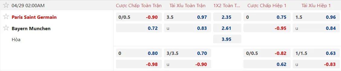 Kèo nhà cái PSG vs Bayern Munich