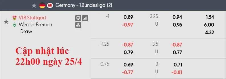 Từ đầu mùa giải, Stuttgart đã thắng kèo tới 15 trận, chỉ kém 4 đội tại Bundesliga. Trong khi đó, Bremen mới có 11 trận thắng kèo châu Á, chỉ hơn 2 đội. Mức kèo chấp 1 hòa đối với Stuttgart nhìn chung là đáng tin cậy cho trận đấu này.