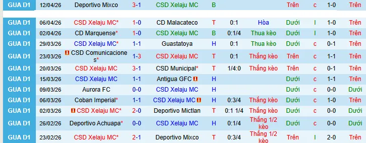 + Tại giải VĐQG, trong 10 trận gần nhất trên sân nhà có mở kèo châu Á, Xelaju thắng 8, hòa 1 và chỉ thua 1.