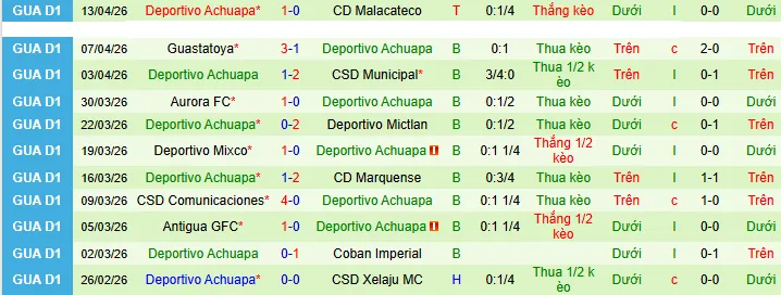 + Trong 4 trận đấu vừa qua trên sân khách, Achuapa thắng 1 và thua 3 theo kèo châu Á.