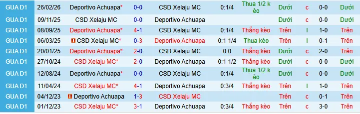 Lịch sử đối đầu giữa Xelaju và Deportivo Achuapa.