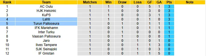 Trong khi đó, Lahti đang thể hiện sự ổn định hơn với 2 trận thắng, 1 hòa và 2 thua trong 5 trận đấu tại vòng bảng cúp Liên đoàn. Mặc dù đã bị loại sớm, nhưng người hâm mộ vẫn nhận thấy được bản lĩnh của Lahti. Khi trở lại giải VĐQG quan trọng, Lahti đã có chiến thắng 1-0 trên sân của Jaro trong lượt trận mở màn. Tổng thể, họ bất bại trong 4/6 trận đấu chính thức ở mùa giải 2026. Với phong độ hiện tại, Lahti hứa hẹn sẽ mang đến một trận đấu đầy thử thách cho Turun Palloseura, dù phải thi đấu trên sân khách.