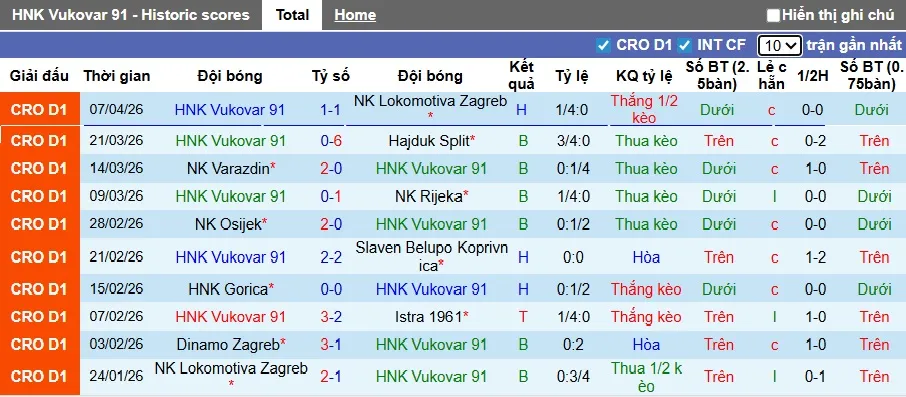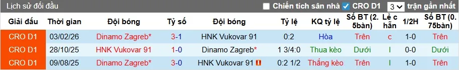 Trong 3 cuộc chạm trán ở mùa giải này, Vukovar đã thua 2 trận khi thi đấu xa nhà và từng gây bất ngờ với chiến thắng trước Dinamo Zagreb trên sân nhà hồi tháng 10/2025. Tuy nhiên, khả năng kịch bản này tái diễn trong trận đấu tối nay là rất khó khăn. Thành tích thua 4/5 trận gần đây của Vukovar hoàn toàn trái ngược với chuỗi 9 trận toàn thắng của Dinamo Zagreb. Với đẳng cấp vượt trội và quyết tâm bảo vệ ngôi đầu bảng, chiến thắng cho Dinamo Zagreb không phải là điều quá bất ngờ.