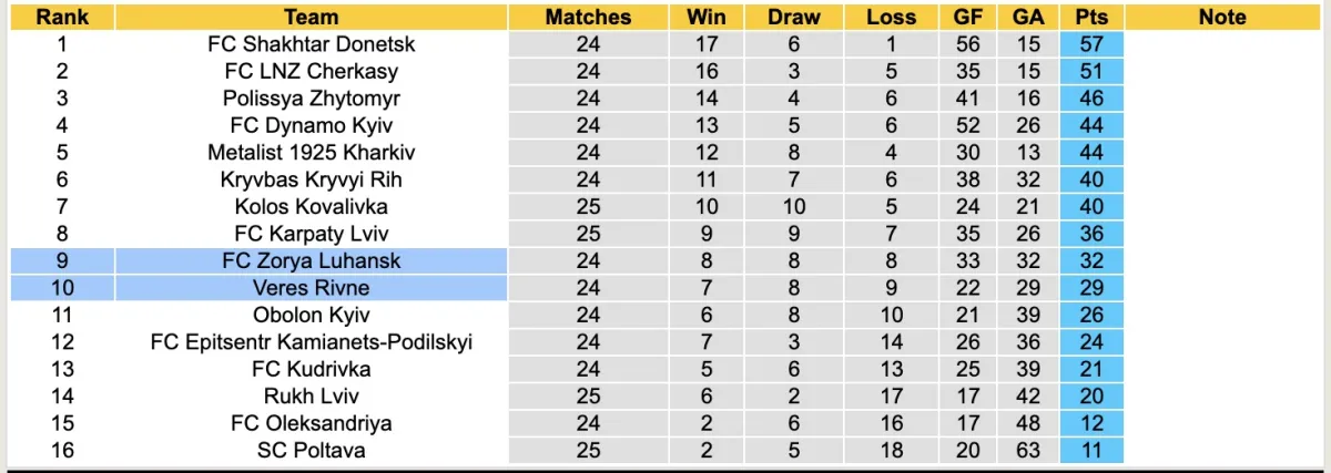 Ở vòng đấu gần đây, Veres Rivne đã tận dụng tốt cơ hội để giành chiến thắng 3-0 trước PFC Oleksandria, đội bóng đang nằm trong nhóm xuống hạng. Đội khách hiện đang xếp ngay sau đối thủ với 29 điểm nhưng chỉ hơn nhóm nguy hiểm 8 điểm.