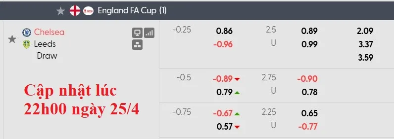 Niềm tin dành cho Chelsea đang giảm sút trầm trọng khi tỷ lệ chấp kèo châu Á chỉ dừng ở mức 1/4 trước trận đấu này. Đội chủ nhà đã thua kèo tới 7/8 trận gần nhất trên mọi đấu trường, trong khi Leeds lại thắng kèo ở 3 trận vừa qua.