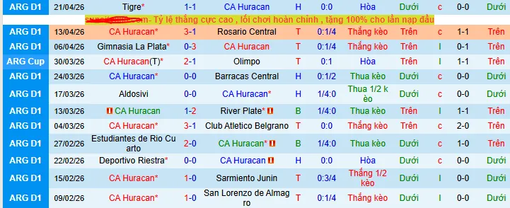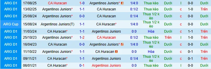 + Theo kèo châu Á, Huracan đã thắng 2, hòa 1 và thua 4 trong những lần tiếp đón Argentinos trên sân nhà.