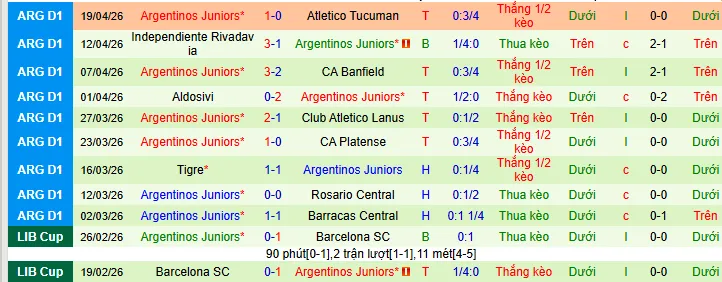+ Argentinos có 6 trận thắng và chỉ 1 trận thua trong 7 trận vừa qua theo kèo châu Á.