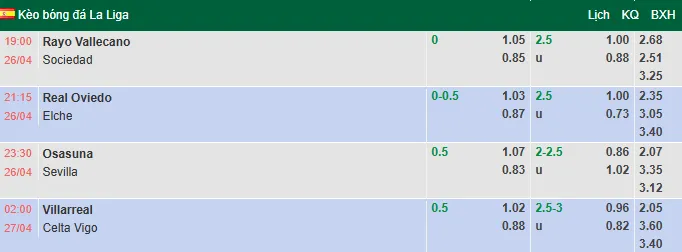 Cả hai đội đều không có hiệu suất ghi bàn cao trong thời gian gần đây. 4/5 trận sân nhà gần nhất của Rayo kết thúc với tối đa 2 bàn thắng. Kèo tổng số bàn thắng 2 1/2 trên sàn giao dịch đang có xu hướng giảm điểm ăn cho cửa Xỉu.