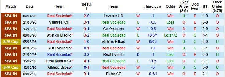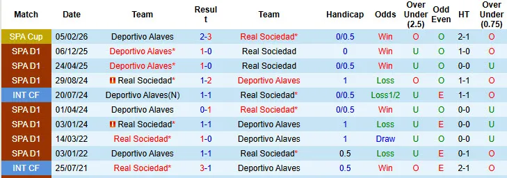 Real Sociedad đã có niềm vui thắng kèo trong trận đấu vừa qua gặp Alaves. Họ thắng kèo tới 4/6 trận gần nhất. Trong khi đó, Alaves không thắng kèo trong 4/6 trận đấu gần đây tại giải VĐQG.