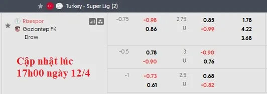 Rizespor được đánh giá cao hơn rất nhiều trước trận đấu này với mức kèo chấp lên tới 3/4. Đây là mức kèo đáng tin cậy cho đội đã thắng 2 và hòa 1 trong 3 trận sân nhà gần nhất. Mọi thứ đang diễn ra thuận lợi đối với họ.
