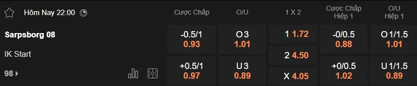 Tại sân nhà, Sarpsborg đang là lựa chọn đáng tin cậy khi họ đã thắng kèo châu Á trong 4/5 trận gần đây có tỷ lệ trên sàn giao dịch. Trong khi đó, IK Start bước vào cuộc đối đầu tối nay với thành tích thua kèo châu Á 4 trận liên tiếp gần nhất.