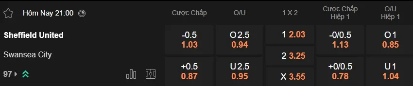 Tại sàn giao dịch châu Á, Sheffield United được đánh giá cao hơn với mức kèo chấp 1/2 trái. Tỷ lệ này đã được áp dụng trong trận đối đầu gần nhất, khi họ đánh bại Swansea ngay trên sân nhà. Với thành tích thắng kèo 2/3 trận gần đây trên sân nhà khi chấp 1/2 trái, Sheffield United đang có sự tự tin để tiếp đón Swansea, đội bóng đã thua kèo 4/6 trận vừa qua.