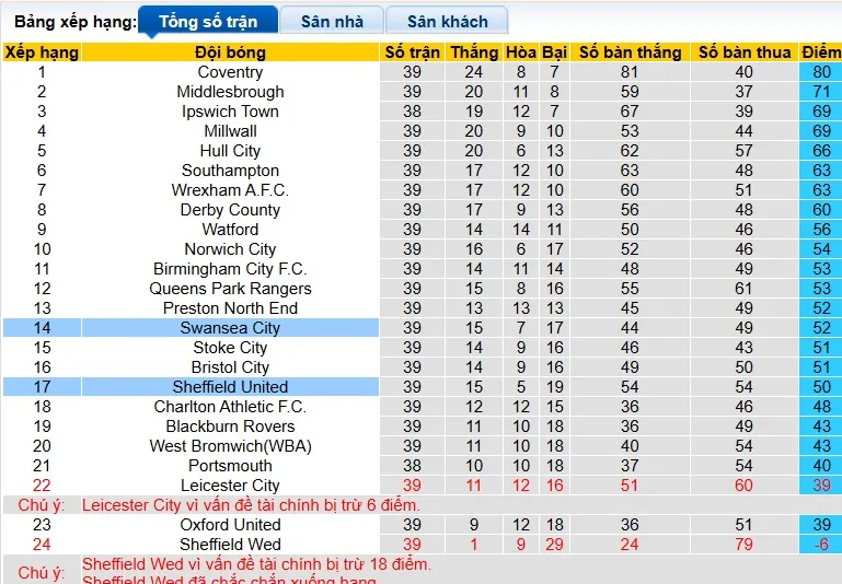 Tuy nhiên, đội bóng xứ Wales bước vào kỳ nghỉ quốc tế với hai trận thua liên tiếp trước Wrexham (0-2) và Coventry (0-3). Những kết quả kém cỏi này đã khiến họ rơi xuống vị trí thứ 14 trên bảng xếp hạng với 52 điểm, kém top 6 11 điểm và hơn khu vực xuống hạng 13 điểm. Mùa giải của Swansea có lẽ không còn nhiều động lực.