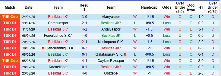 Thống kê phong độ 10 trận đấu gần nhất của Besiktas