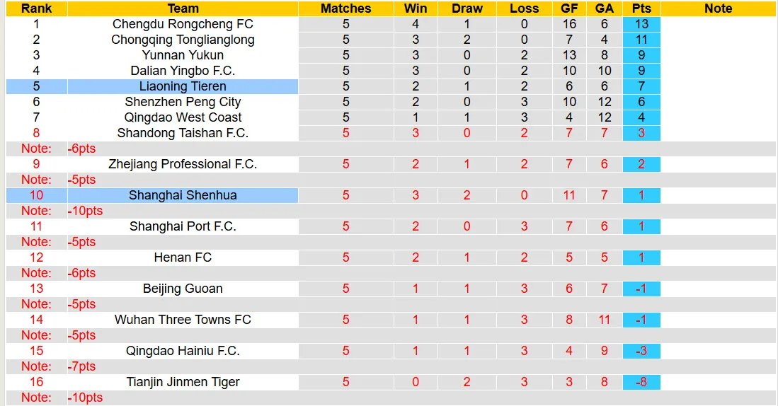 Đội bóng đương kim á quân Shanghai Shenhua khởi động mùa giải VĐQG Trung Quốc 2026 với nhiều khó khăn khi bị trừ đến 10 điểm do án phạt liên quan đến gian lận và sắp xếp tỷ số. Với khởi đầu không thuận lợi, Shanghai Shenhua trên lý thuyết đã bị loại khỏi cuộc đua giành chức vô địch. Tuy nhiên, chỉ sau một tháng thi đấu, đội bóng này đã nhanh chóng lấy lại phong độ của một nhà vô địch. Họ hiện là một trong ba đội chưa từng nhận thất bại tại giải VĐQG, với thành tích 3 trận thắng và 2 trận hòa sau 5 vòng đấu.