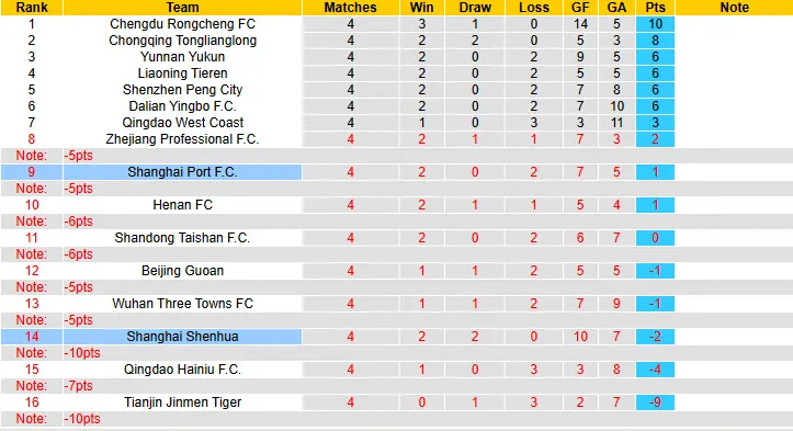 Sau 4 trận đầu tiên, Shanghai Port chỉ có được 2 chiến thắng và phải nhận 2 thất bại. Hiện tại, dưới sự dẫn dắt của HLV Kevin Muscat, đội bóng này đứng ở vị trí thứ 9 trên bảng xếp hạng với chỉ 1 điểm, hoàn toàn tụt lại trong cuộc đua giành ngôi vô địch mùa này. Tối nay, họ sẽ có chuyến làm khách tại sân của đối thủ đáng gờm Shanghai Shenhua, và người hâm mộ đang tỏ ra lo lắng về khả năng đội nhà sẽ phải nhận một thất bại nữa. Cần lưu ý rằng cả 2 trận thua mà Shanghai Port phải chịu đựng ở mùa giải năm nay đều diễn ra trên sân khách. Về phần đội chủ nhà, Shanghai Shenhua cũng bị trừ điểm nhưng nặng hơn với 10 điểm, khiến vị trí của họ không được như mong đợi. Hiện tại, Shanghai Shenhua đang đứng ở vị trí thứ 14 trên bảng xếp hạng. Tuy nhiên, xét về phong độ thực tế, Shanghai Shenhua lại thể hiện ổn định hơn với 2 chiến thắng và 2 trận hòa trong 4 trận đã đấu tại giải VĐQG này.