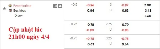 Phân tích và dự đoán kết quả trận đấu giữa Fenerbahce và Besiktas, diễn ra vào lúc 0h00 ngày 6 tháng 4 trong khuôn khổ Giải VĐQG Thổ Nhĩ Kỳ. Những nhận định về tỷ lệ kèo và kết quả trận đấu sẽ được đưa ra từ các chuyên gia tại lichbongda.vn.