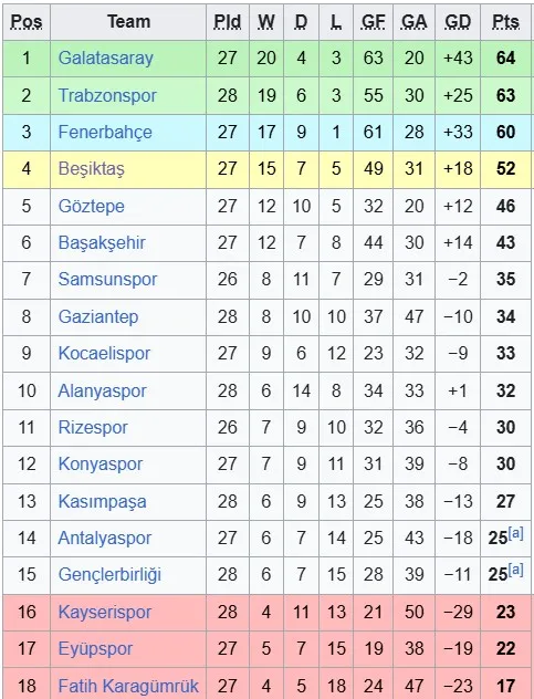 Trong trận đấu sớm của vòng 29 giải VĐQG Thổ Nhĩ Kỳ diễn ra đêm qua, Trabzonspor đã giành chiến thắng 2-1 trước Galatasaray. Đây là trận đấu được chú ý nhất của vòng đấu này. Kết quả này đã làm cho cuộc đua vô địch và cuộc chiến cho vị trí top 2 trở nên khó đoán hơn.