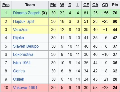Hiện tại, Hajduk Split đang xếp thứ 2 trên bảng xếp hạng. Tuy nhiên, khoảng cách giữa họ và đội đầu bảng Dinamo Zagreb đã lên tới 10 điểm. Trong khi giải đấu còn 6 vòng nữa, khả năng để họ vô địch là không mấy khả thi.