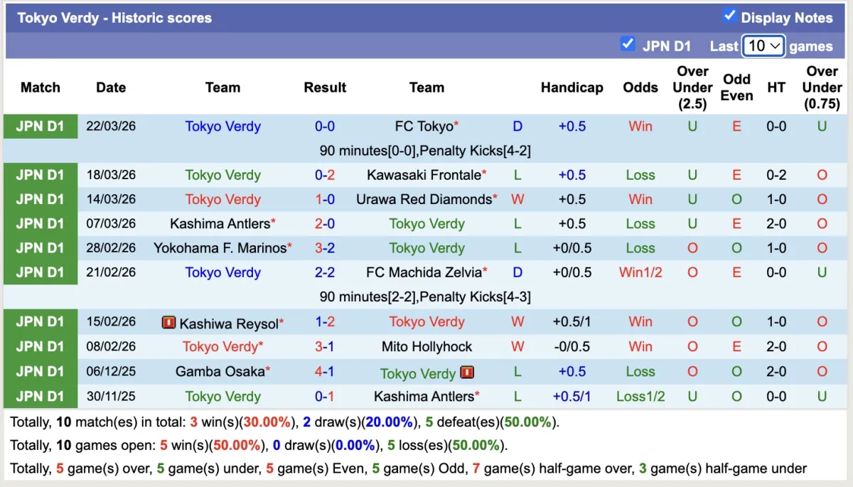 – Thống kê phong độ 10 trận gần nhất của Tokyo Verdy