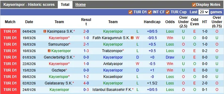 Thống kê phong độ trong 10 trận đấu gần đây của Kayserispor