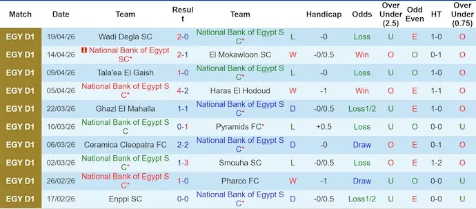 Lịch sử đối đầu cũng phản ánh sự giằng co. Trong 5 lần gặp nhau gần nhất, National Bank thắng 2 và hòa 3, còn ZED chưa có chiến thắng nào. Đáng chú ý, cả 2 lần National Bank tiếp đón ZED trên sân nhà đều kết thúc với tỷ số 1-1, cho thấy thế trận thường rất cân bằng.