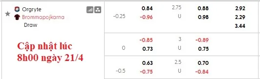 Có một sự bất ngờ nhỏ khi Brommapojkarna được đánh giá cao hơn trong trận đấu này. Mức chấp chỉ là 1/4, nhưng vẫn mang lại sự tin cậy cho giới đầu tư. Họ cũng như đội chủ nhà, đều thắng kèo 2/3 trận từ đầu mùa.