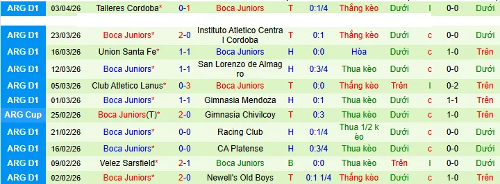 + Boca Juniors đã không vượt qua được mức chấp -0.25 trong 6/10 trận gần đây nhất của họ.