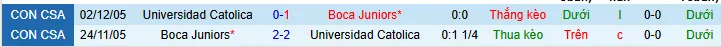 + 2 trận đối đầu giữa Univ. Católica và Boca trong quá khứ có tổng 5 bàn thắng.