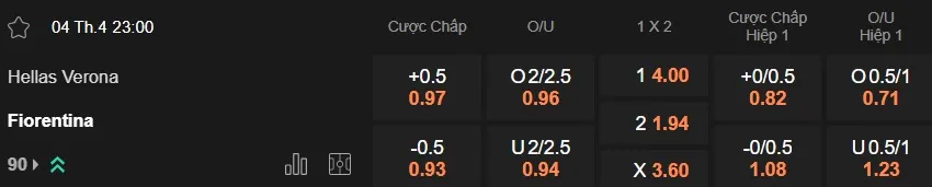 Fiorentina đang có phong độ ấn tượng theo kèo châu Á khi đã thắng liên tiếp 4 trận gần đây. Ngược lại, Verona vẫn chưa thắng kèo nào tại sân nhà từ đầu năm 2026, với 6 thất bại và 1 trận hòa.