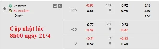 Không có gì ngạc nhiên khi Hacken được đánh giá cao hơn Vasteras trong trận đấu này. Mặc dù đội khách chỉ chấp 1/4, nhưng vẫn mang lại sự tin tưởng cho các nhà đầu tư trong trận đấu VĐQG Thụy Điển diễn ra đêm nay.