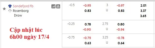 Với phong độ nhỉnh hơn, không có gì đáng ngạc nhiên khi Sandefjord được đánh giá cao hơn trong trận đấu này. Mức kèo chấp 1/2 hiện tại là hợp lý dành cho đội chủ nhà. Trong khi đó, Rosenborg đã thua kèo 7 trong 8 trận sân khách gần nhất.