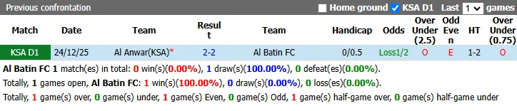 Nhà cái đã đưa ra mức kèo đồng banh (0:0) cho trận đấu này. Al Batin có chút lợi thế nhờ sân nhà nhưng họ đã thua kèo đến 7 trong 9 trận tiếp khách gần đây. Trong khi đó, Al Anwar bất bại 7/9 trận vừa qua theo chỉ số tương tự.