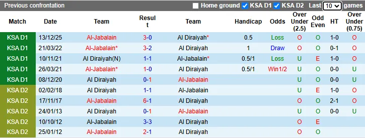 Dù lịch sử đối đầu nghiêng về Al-Jabalain, nhưng phong độ hiện tại và lợi thế sân nhà đang giúp Al Diraiyah nhận được sự tín nhiệm cao từ giới chuyên môn. Nhà cái đã niêm yết Al Diraiyah ở cửa trên với mức chấp lên tới -1 theo kèo châu Á. Trên sân nhà, Al Diraiyah đã thắng 9 trận liên tiếp gần đây theo kèo này.