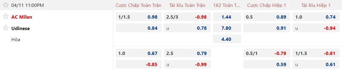 Kèo nhà cái AC Milan vs Udinese