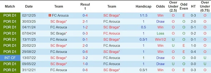 Lịch sử đối đầu Braga vs Arouca