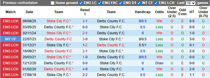 Thống kê phong độ, lịch sử đối đầu Derby County vs Stoke City
