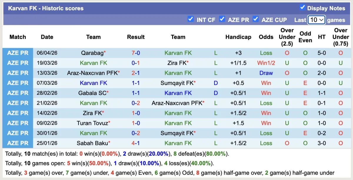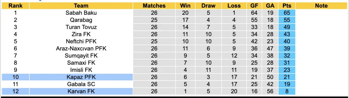 Đến thời điểm này, Karvan FK chỉ có 1 chiến thắng sau 26 vòng đấu tại giải VĐQG Azerbaijan, trong khi đó, họ đã phải nhận tới 20 thất bại. Đội bóng hiện đang đứng cuối bảng với chỉ 8 điểm, có thể nói họ đang trở thành "kho điểm" của giải đấu năm nay.