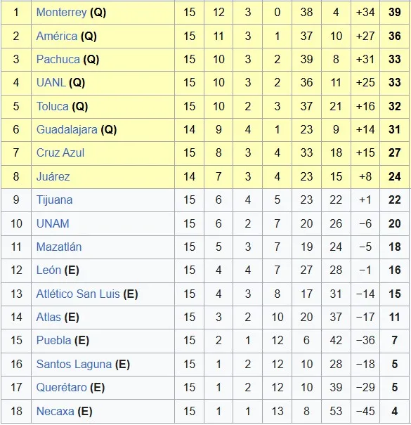 Hiện tại, nữ Pumas UNAM đang đứng ở vị trí thứ 10 với 20 điểm sau 15 trận đấu, kém 4 điểm so với đội đang đứng thứ 8. Họ chỉ còn 2 trận đấu nữa để có cơ hội bứt phá vào nhóm dự play-off, nhưng điều này sẽ không dễ dàng.