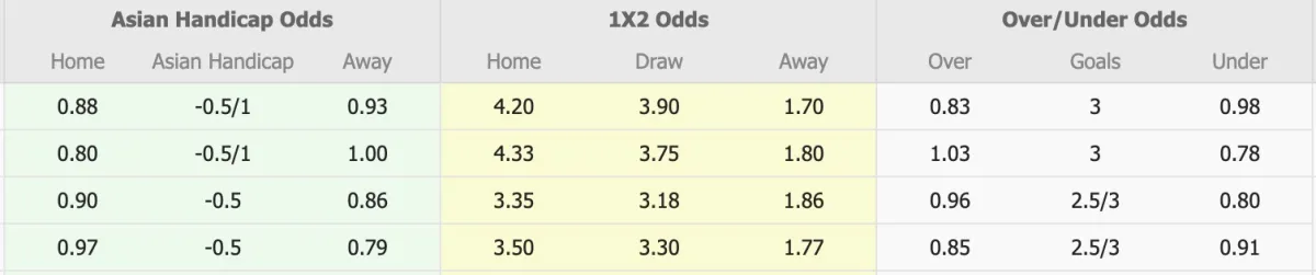 Henan đang được các nhà cái đánh giá cao hơn dù phải thi đấu trên sân khách, điều này có vẻ hợp lý khi mà trong 2/3 trận gần đây, đội bóng này đều thắng kèo. Hơn nữa, 7/10 trận gần nhất của Qingdao Hainiu đều không thể vượt qua mức Handicap, cho thấy đội khách có thể là một lựa chọn hợp lý.