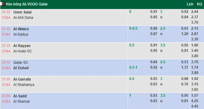 Phân tích trận đấu giữa Umm Salal và Al-Ahli Doha sẽ diễn ra vào lúc 21h15 ngày 27/4/2026 trong khuôn khổ giải VĐQG Qatar. Các chuyên gia hàng đầu sẽ đưa ra dự đoán và phân tích về tỷ lệ kèo châu Âu cũng như châu Á cho cuộc đối đầu này.