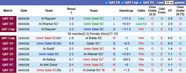 Thống kê phong độ 10 trận gần nhất của Umm Salal