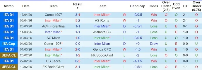 Phong độ gần đây của Inter Milan có chút dao động nhưng vẫn giữ được sự ổn định cần thiết. Trong 10 trận gần nhất, đội bóng áo xanh đen thắng 4, hòa 3 và thua 3. Sau giai đoạn chững lại với nhiều kết quả hòa, Inter Milan đã tìm lại cảm giác chiến thắng với 2 trận thắng liên tiếp tại Serie A. Điều đó cho thấy đội đầu bảng vẫn kiểm soát tốt nhịp độ cuộc đua. Trên sân nhà, Inter Milan thắng 2, hòa 1 và thua 1 trong các trận gần đây. Mặc dù không phải chuỗi thành tích hoàn hảo, nhưng khi hàng công bắt đầu hoạt động trơn tru trở lại, sức mạnh tại Giuseppe Meazza vẫn rất đáng gờm.