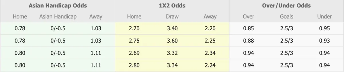 Mức Tài Xỉu mà nhà cái niêm yết cho trận này là 2 3/4, cho thấy họ cũng dự đoán một trận đấu có nhiều bàn thắng. Điều này hoàn toàn có cơ sở khi mà 7/8 lần đối đầu gần nhất giữa hai câu lạc bộ đều có tổng số bàn thắng từ 3 đến 4 bàn mỗi trận.