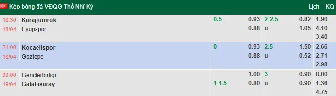 Phân tích trận đấu giữa Kocaelispor và Goztepe diễn ra vào lúc 21h00 ngày 18/4/2026 trong khuôn khổ giải VĐQG Thổ Nhĩ Kỳ. Các chuyên gia hàng đầu sẽ đưa ra dự đoán và đánh giá tỷ lệ kèo châu Âu cũng như châu Á cho cuộc chạm trán này.