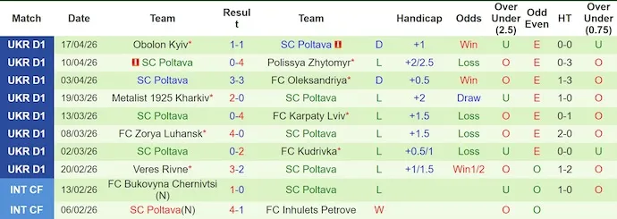 Poltava đang trải qua mùa giải đầy biến động. Với 1 chiến thắng, 2 trận hòa và 7 thất bại trong 10 trận gần nhất, họ cho thấy sự chênh lệch lớn so với phần còn lại của giải đấu. Tuy nhiên, dấu hiệu hồi phục đã xuất hiện khi Poltava có điểm trong 2 trong 3 trận gần đây. Trong bối cảnh bị dồn vào chân tường, mỗi điểm số lúc này đều mang giá trị tinh thần rất lớn.