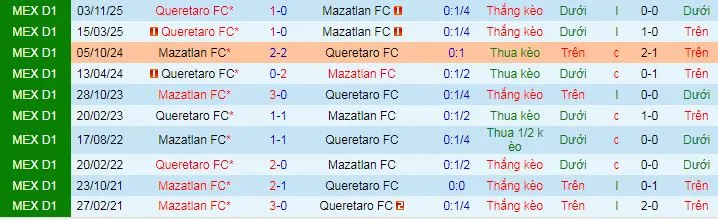 Trong 11 lần đối đầu trước đây, Mazatlán và Querétaro có thành tích khá cân bằng: Mazatlán thắng 5, Querétaro thắng 3 và 4 trận còn lại kết thúc với tỷ số hòa.